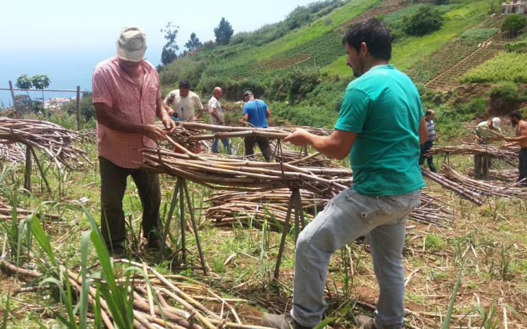 Unlike large, flat plantations, Madeira’s sugarcane fields require hands-on work at every stage — from planting and tending the cane to harvesting and transporting it, often by hand. Traditionally, the harvest involved bundling the canes using metal clamps, a time-consuming and physically demanding task that made transportation particularly challenging. Over time, practices evolved and the bundles became lighter, improving working conditions while preserving traditional know-how.